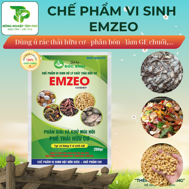 Bộ men vi sinh Emzeo – Emic – EM Sfarm – Trichoderma là giải pháp sinh học hiệu quả giúp ủ phân gà, cá, tôm, rác thải nhà bếp thành phân hữu cơ vi sinh an toàn, giàu dinh dưỡng, thân thiện môi trường.