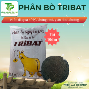 – Phân bò tribat là loại phân bò đã qua xử lý bằng nấm đối kháng Trichoderma. Sau quá trình ủ đống bằng trichoderma, phân bò hoai mục, các thành phần dinh dưỡng biến đổi thành các chất dễ hấp thụ, mầm bệnh được tiêu diệt một cách hoàn toàn từ đó phân bò tribat dùng ngay cho cây trồng một cách hiệu quả.